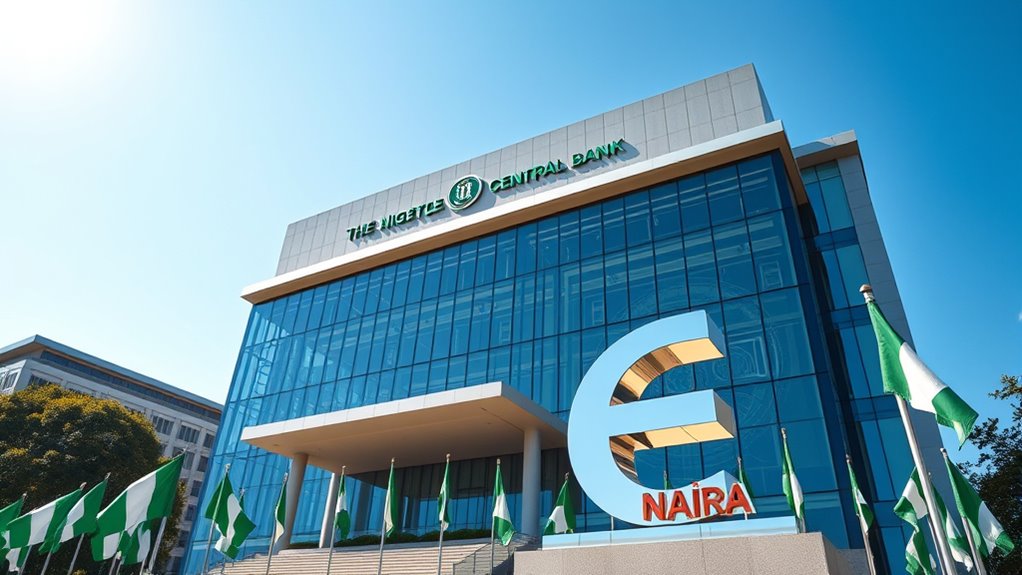 Nigeria’s Central Bank has upgraded the e-naira with new features like NFC-enabled contactless payments, allowing you to tap your phone or device for quick, hygienic transactions. They’ve also enhanced security with stronger encryption and blockchain-backed ledgers, making your digital wallets safer. These updates aim to boost user adoption and support Nigeria’s cashless goals. If you want to understand how these changes could impact you, there’s more to uncover about this new model.