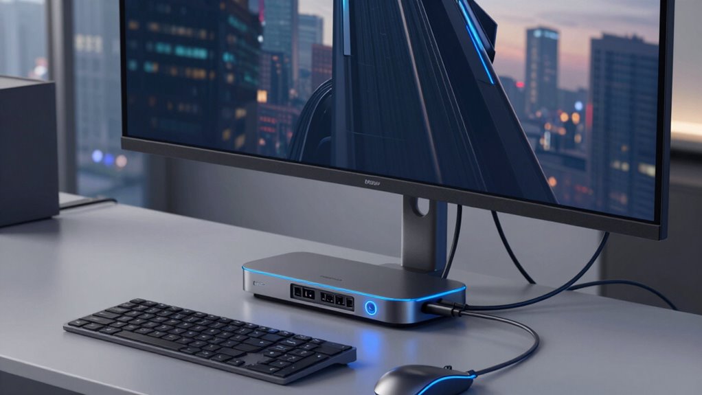 Choosing the right docking station is like finding the perfect bridge for your ultrawide monitor setup—strong, reliable, and seamlessly connecting everything. I once struggled with tangled cables until I found a dock that transformed my workspace into a smooth highway of productivity. Remember, the right dock isn’t just an accessory; it’s the backbone of your digital world. Invest wisely, and watch your workflow flow effortlessly like a well-oiled machine.