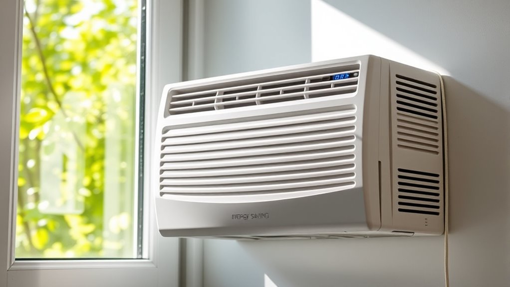 Energy-efficient window ACs considerably lower my long-term electricity bills because they use less power while still cooling effectively. I notice a marked difference in my monthly expenses compared to older, less efficient units. By choosing models with good energy ratings, I save money over time and reduce my environmental impact. Plus, I don’t have to worry about skyrocketing costs during hot summer months, making my home more comfortable and economical.
