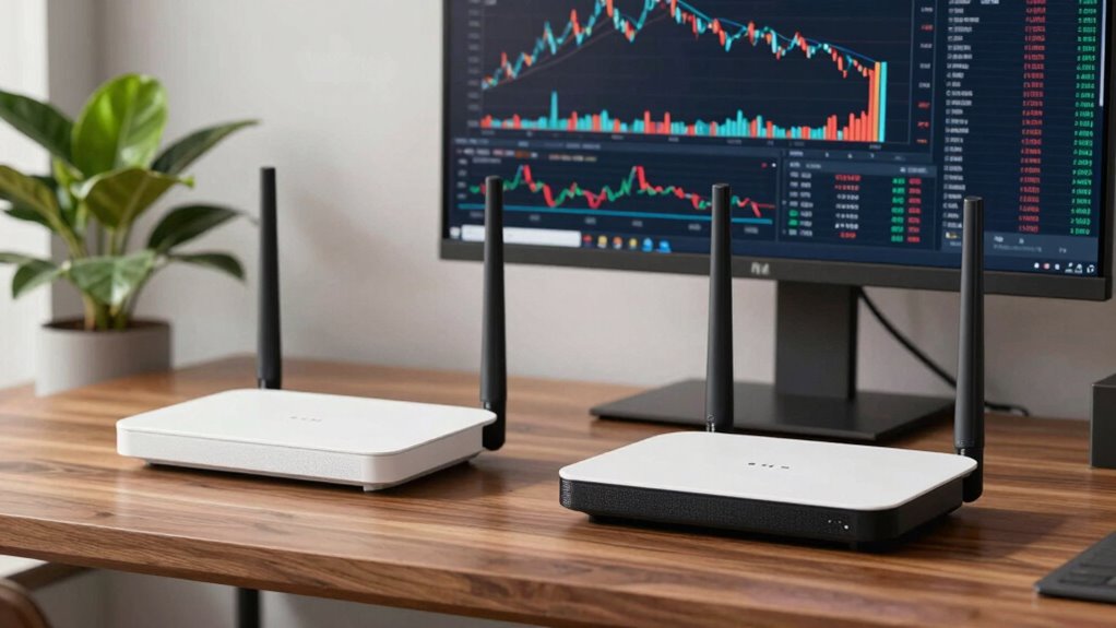 When I think about choosing fast mesh WiFi for live trading, several key factors come to mind. Speed is essential, but I also need to take into account coverage area and how many devices can connect without lag. Plus, latency, stability, and security features play a significant role in ensuring my trading experience is smooth and safe.