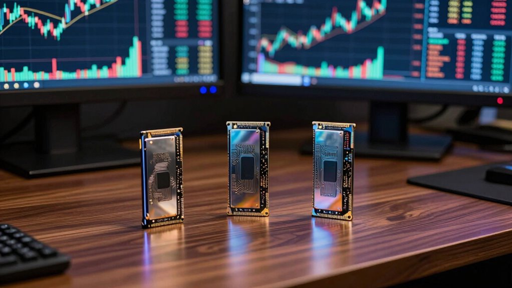 Choosing the right SSD for your trading PC hinges on key speed and performance metrics. High endurance SSDs typically provide sequential transfer speeds between 550 MB/s and 560 MB/s, which is crucial for trading applications needing quick data access. With TLC 3D NAND technology and SLC caching, these SSDs improve both speed and longevity, ensuring efficient data retrieval during peak trading times. Endurance metrics, like TBW (Terabytes Written), are essential in evaluating reliability; a higher TBW rating means the SSD can handle extensive read/write cycles typical in trading environments. Additionally, SSDs designed for heavy workloads usually offer enhanced write speeds and stability, making them ideal for real-time data analysis and fast decision-making.
