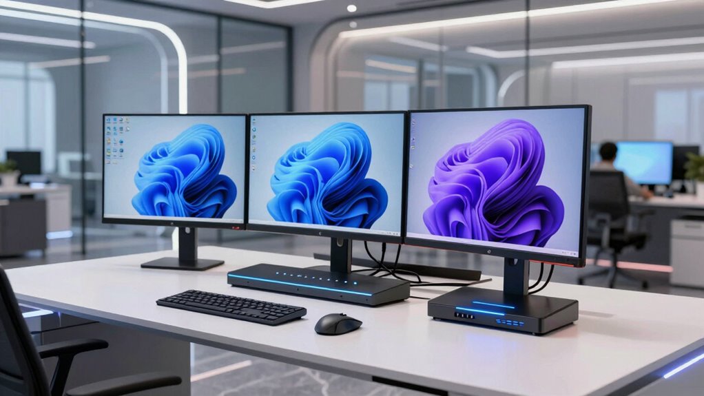 Choosing the right KVM switch can truly elevate your multi-monitor setup, making your workspace more seamless and efficient. By considering factors like resolution, number of ports, and compatibility, you’ll find a solution that fits your needs perfectly. Remember, the perfect switch isn’t just about specs—it’s about how well it integrates into your workflow. With the right choice, you’ll enjoy smoother shifts and a more organized space, gently guiding you toward peak productivity.