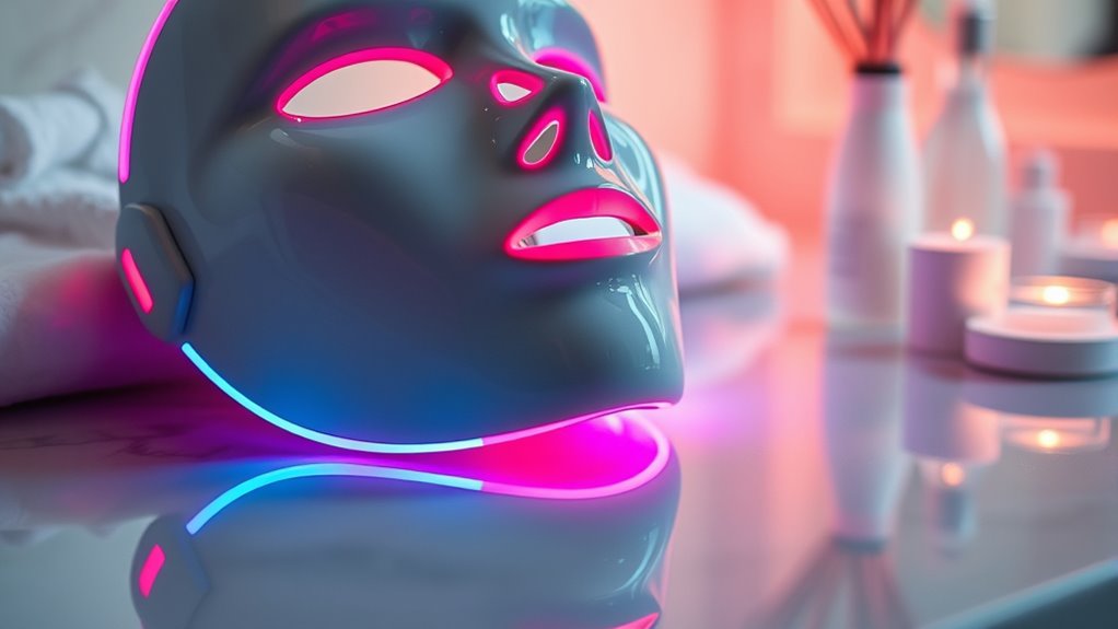 Think of LED face masks as gentle sunlight for your skin—generally safe and soothing. I’ve found that most people experience minimal side effects, like mild redness or dryness, which usually fade quickly. But, if you have sensitive skin or certain skin conditions, it’s wise to consult a dermatologist beforehand. Overall, when used properly, LED therapy is a safe, illuminating path to healthier skin without significant risks.