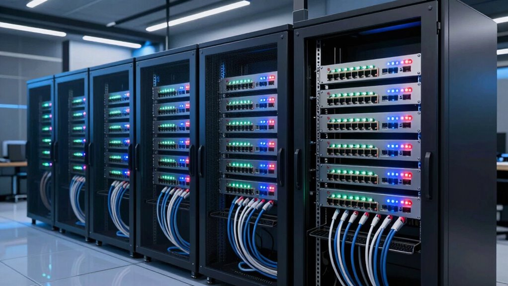 Choosing a managed switch that matches your network’s speed requirements is vital for maximizing performance with your NAS and workstations. You need to guarantee the switch supports the speeds your devices operate at, whether that’s 1G, 2.5G, 5G, or 10G. Compatibility with high-speed ports like 10G SFP+ or 2.5GBase-T can drastically improve data transfer rates for demanding tasks. Auto-negotiation features are also key, as they allow ports to automatically match device speeds, reducing setup issues. Additionally, selecting switches that support multiple speeds on different ports offers flexibility and future-proofing, enabling seamless integration with various devices. Always verify backward compatibility to support legacy equipment without compromising overall network stability.