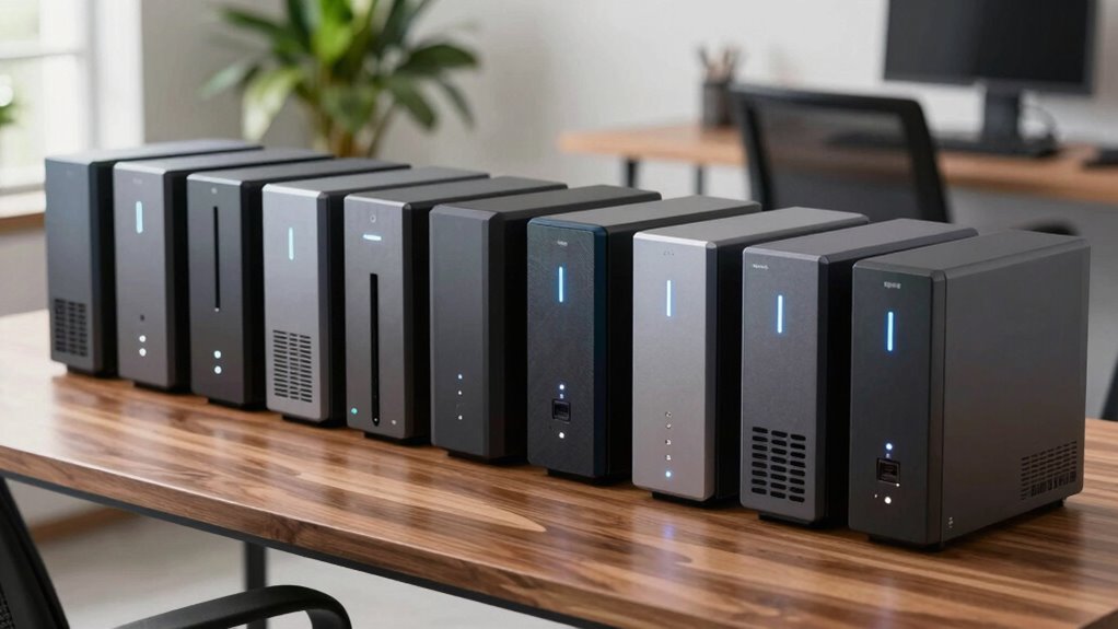 In the vast ocean of NAS options, choosing the right one for your private cloud is like finding a lighthouse in a storm. With the perfect blend of features and capacity, you can guarantee your data is safe and easily accessible. As you navigate through choices like Yxk Zero1 or Synology’s stellar lineup, remember that the right NAS is a steadfast companion, lighting your path to seamless storage and peace of mind. Happy storing!