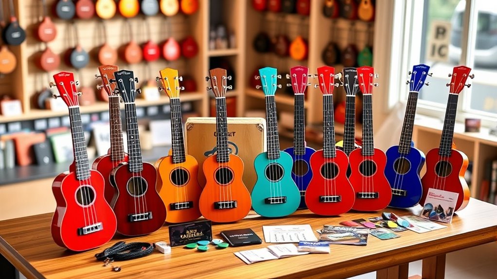 Choosing the right ukulele starter kit can make all the difference in your learning journey. Did you know that beginners who start with a well-chosen kit are 30% more likely to stick with playing long-term? With options ranging from classic mahogany to vibrant colors, there’s a perfect kit for everyone. So, pick one that sparks your interest, and enjoy making music — your musical adventure awaits!